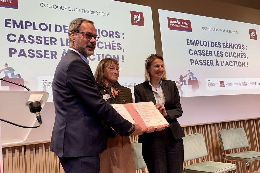 À l’issue du colloque organisé par le groupe AEF le 14 février 2025 à Paris, Astrid Panosyan-Bouvet, ministre chargée du Travail et de l’Emploi a signé un accord d’engagement de développement de l’emploi et des compétences (Edec) avec l’Opcommerce en faveur de l’emploi des seniors.